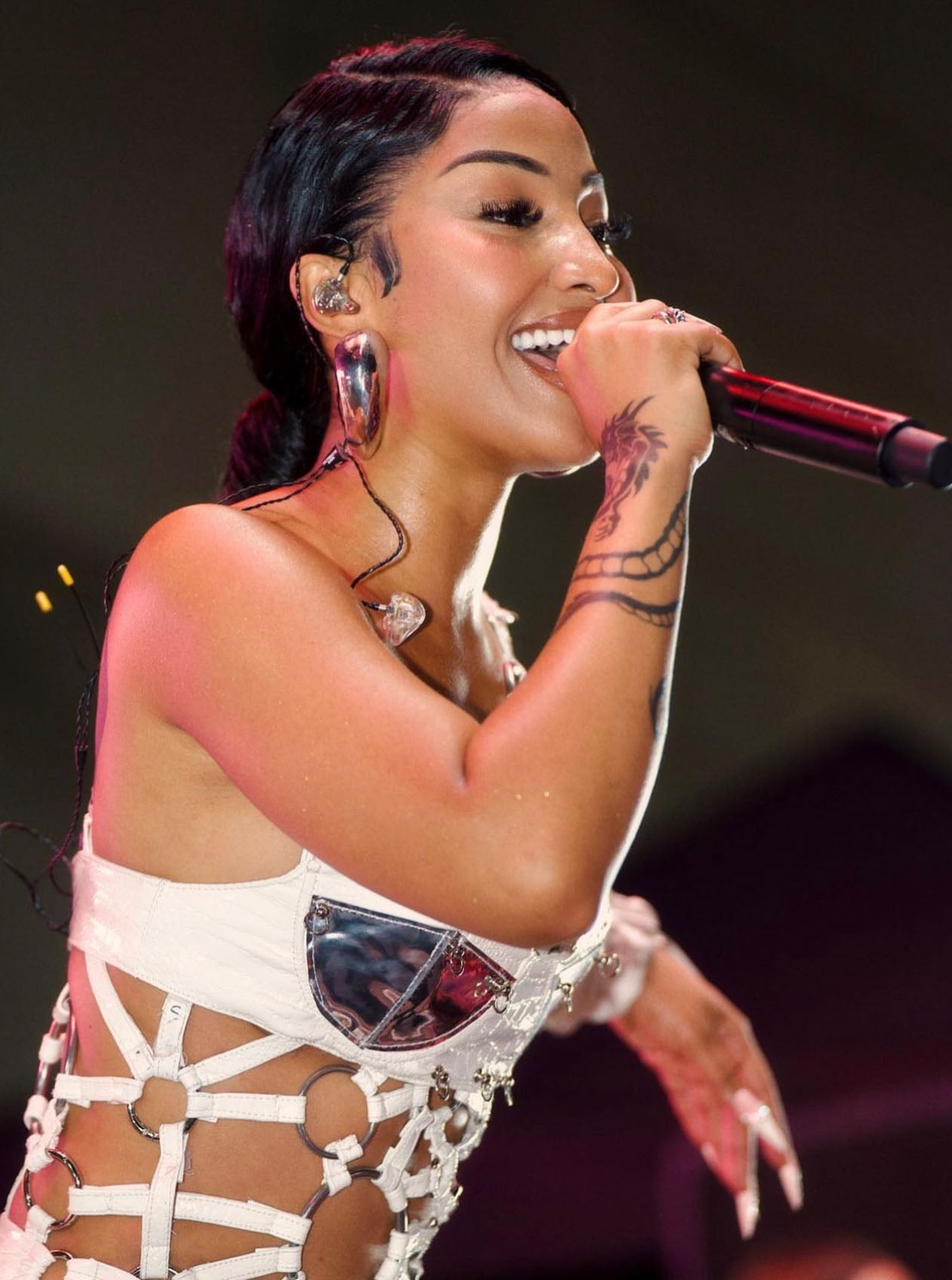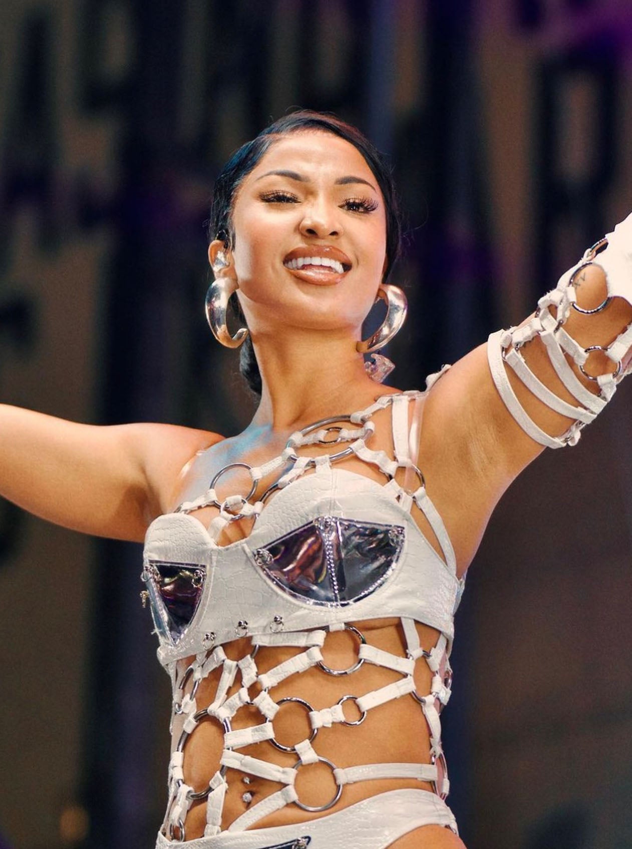 Shenseea dans les créoles Sirena de MISHO en argent.